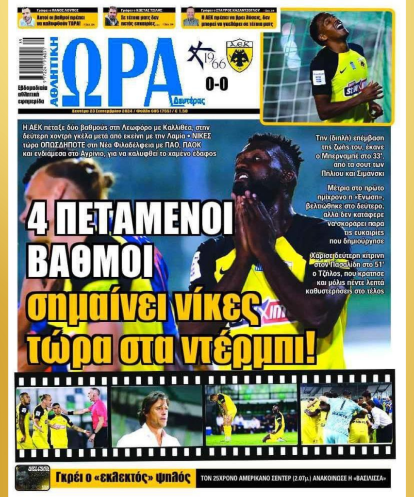 Η νέα απώλεια βαθμών της μετά την ισοπαλία κόντρα στην Athens Kallithea αλλά και η νίκη του Παναθηναϊκού κόντρα στον Πανσερραϊκό είναι τα θέματα που έχουν εστιάσει τα αθλητικά πρωτοσέλιδα της μέρας.