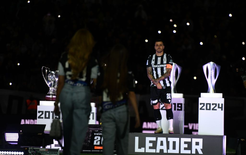 Η εκδήλωση ξεκίνησε με όλους τους παίκτες του ΠΑΟΚ να εισέρχονται στον αγωνιστικό χώρο φορώντας φανέλες με το Νο20, αυτό του Βιεϊρίνια και το μήνυμα «Αρχηγέ ευχαριστούμε, Andre Vieirinha, The Leader, 11.05.2025». Παράλληλα, στα matrix της Τούμπας έπαιζε το μήνυμα της ΠΑΕ, «Ευχαριστούμε αρχηγέ» ενώ επί σκηνής είχαν τοποθετηθεί και τα πέντε τρόπαια που κατέκτησε ο Βεϊρίνια.