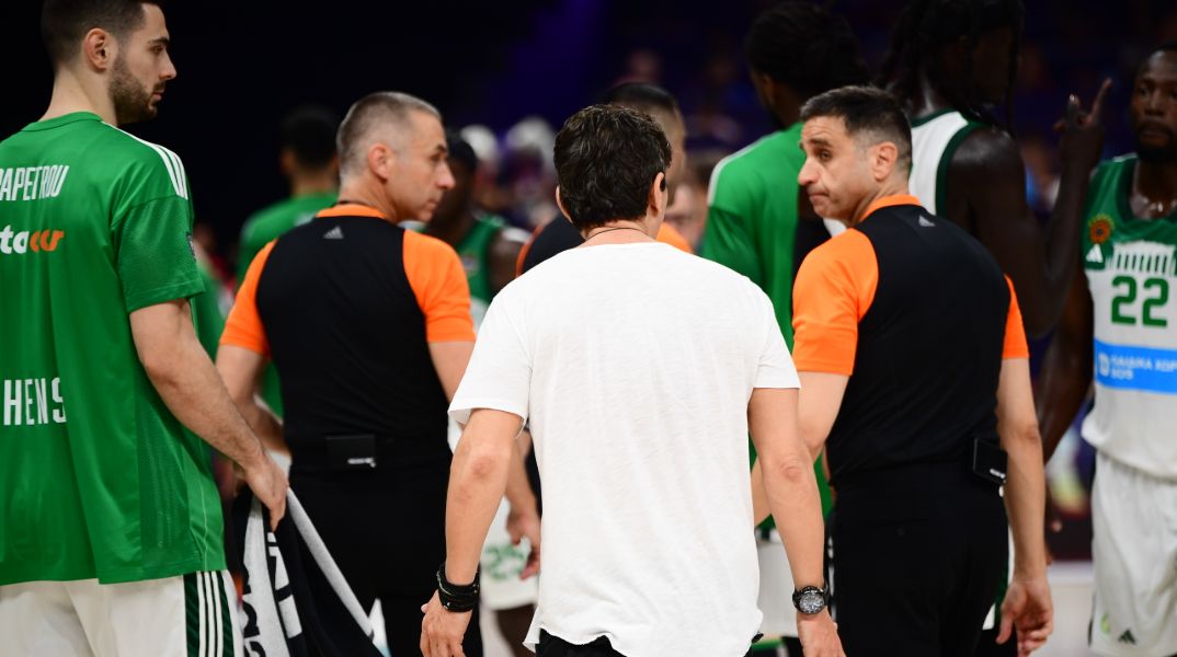 Ο ιδιοκτήτης της ΚΑΕ Παναθηναϊκός AKTOR, Δημήτρης Γιαννακόπουλος ήταν έξαλλος με τους διαιτητές στο τέλος του ημιχρόνου του ημιτελικού του Final Four 2025