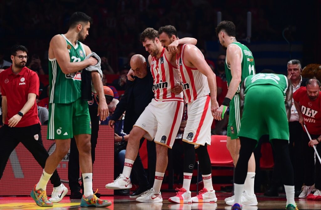 Ο Σάσα Βεζένκοβ σε μια κόντρα με τον Τζέριαν Γκραντ προσγειώθηκε άτσαλα στο παρκέ, καθώς γύρισε τον αστράγαλο του.