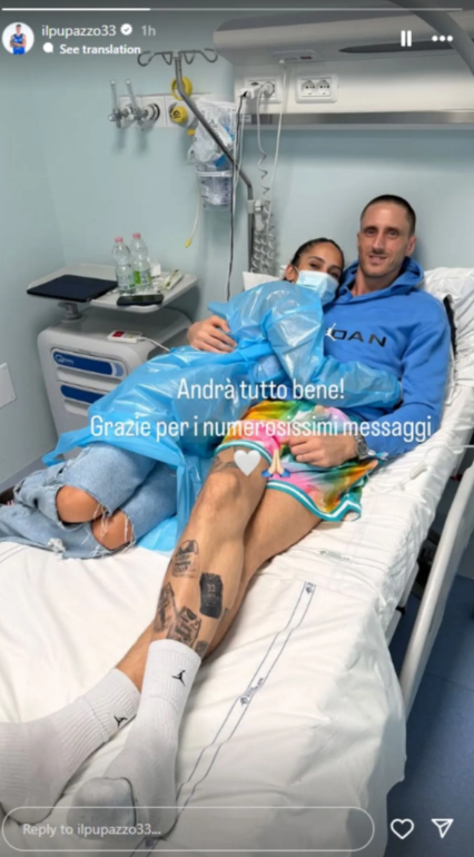 Παρά τις δυσκολίες, ο Ιταλός φόργουορντ της Βίρτους παραμένει αισιόδοξος και συγκινεί με τη στάση του, δημοσιεύοντας στο Instagram φωτογραφία από το κρεβάτι του νοσοκομείου, αγκαλιά με τη σύζυγό του. «Όλα θα πάνε καλά. Ευχαριστώ για τα αναρίθμητα μηνύματα», έγραψε χαρακτηριστικά o Ακίλε Πολονάρα.