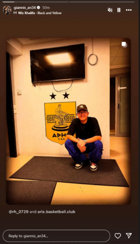 Μέσα από τον προσωπικό του λογαριασμό στο Instagram, ο Γιάννης Αντετοκούνμπο κοινοποίησε την ανάρτηση του Ρίτσαρντ Σιάο από το Αλεξάνδρειο Μέλαθρο. Στο background του Instagram Story επέλεξε να προσθέσει το τραγούδι “Black & Yellow”, ένα ξεκάθαρο μουσικό και χρωματικό σχόλιο που παραπέμπει στα χρώματα του Άρη. Με αυτόν τον τρόπο, ο Έλληνας άσος έδειξε τη συμβολική του στήριξη στη νέα διοικητική αρχή.