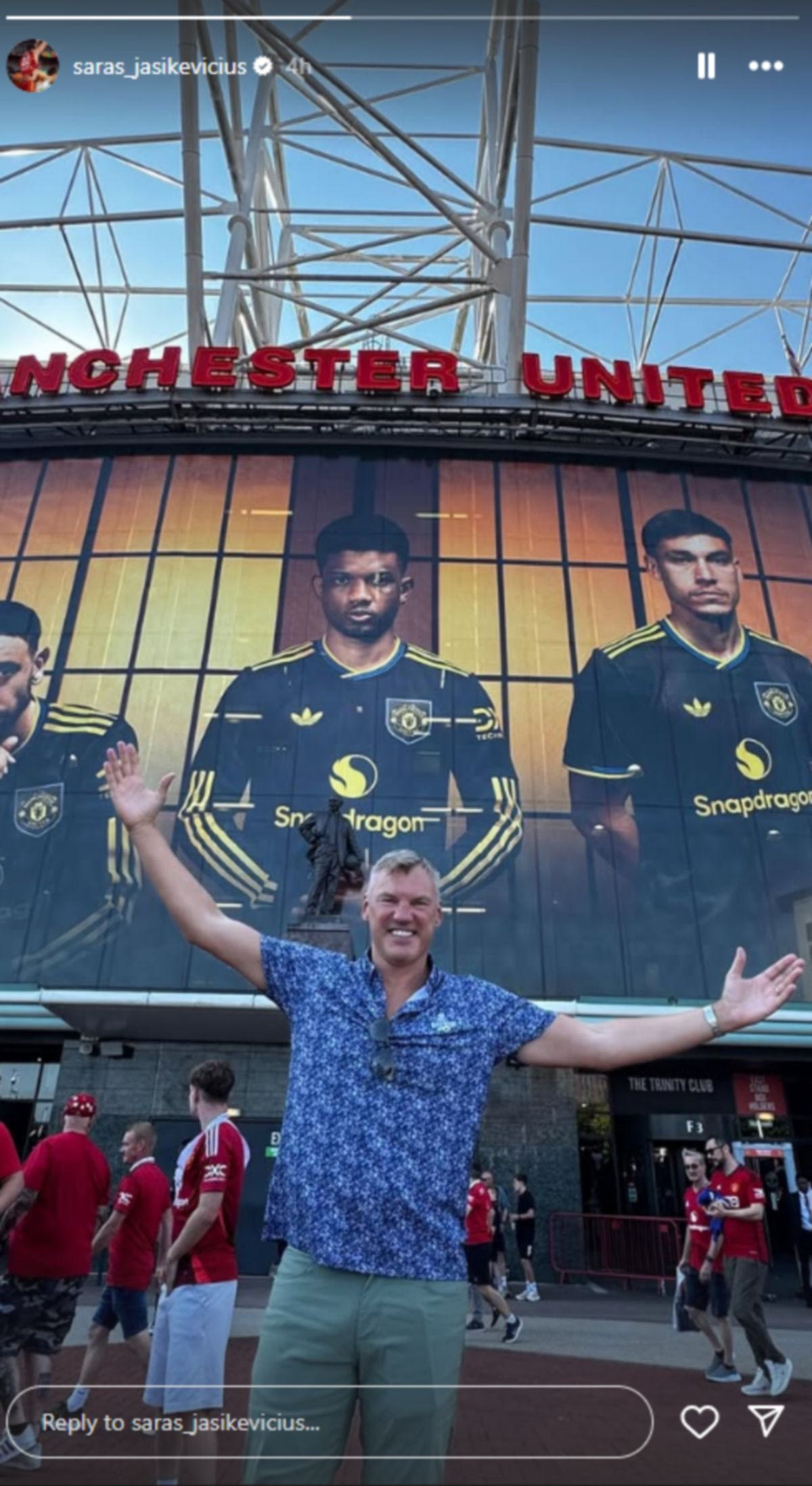 Ο Γιασικεβίτσιους δεν έκρυψε τον ενθουσιασμό του για την επίσκεψή του στο θρυλικό Ολντ Τράφορντ. Πριν από τη σέντρα στον αγώνα Μάντσεστερ Γιουνάιτεντ – Άρσεναλ, φωτογραφήθηκε χαμογελαστός έξω από το γήπεδο, δείχνοντας για άλλη μια φορά τη σύνδεσή του με τον αγγλικό σύλλογο.