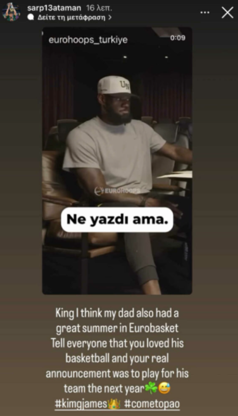 Επικό κάλεσμα του Σαρπ Αταμάν στον Λεμπρόν: «Η πραγματική ανακοίνωση είναι ότι θα παίξεις στον Παναθηναϊκό»