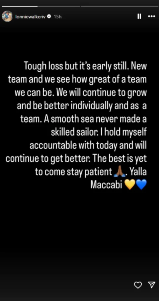 O Λόνι Γουόκερ ανέλαβε την ευθύνη για την εντός έδρας ήττα της Μακάμπι από τον Ολυμπιακό στο πλαίσιο της 4ης αγωνιστικής της EuroLeague, όπως έδειξε με την ανάρτηση του στα social media.