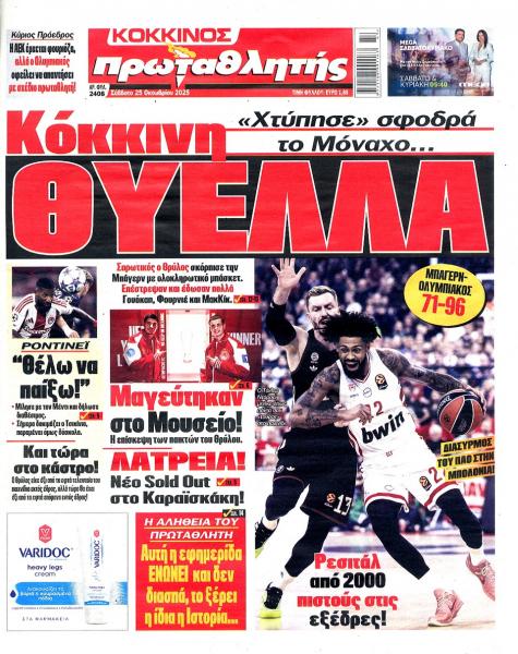 Από τις χθεσινοβραδινές «μάχες» της Ευρωλίγκα, μέχρι την πρώτη προπόνηση του Μπενίτεθ στον Παναθηναϊκό, τα αθλητικά πρωτοσέλιδα παρουσιάζουν για ακόμα μία μέρα μεγάλο ενδιαφέρον.