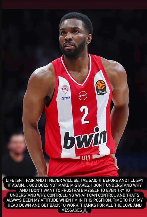 Ο Κίναν Έβανς έστειλε, μέσω μιας ανάρτησής του στα social media, το πρώτο του μήνυμα μετά τον σοβαρό τραυματισμό που υπέστη στην αναμέτρηση του Ολυμπιακού με τη Ζάλγκιρις.
