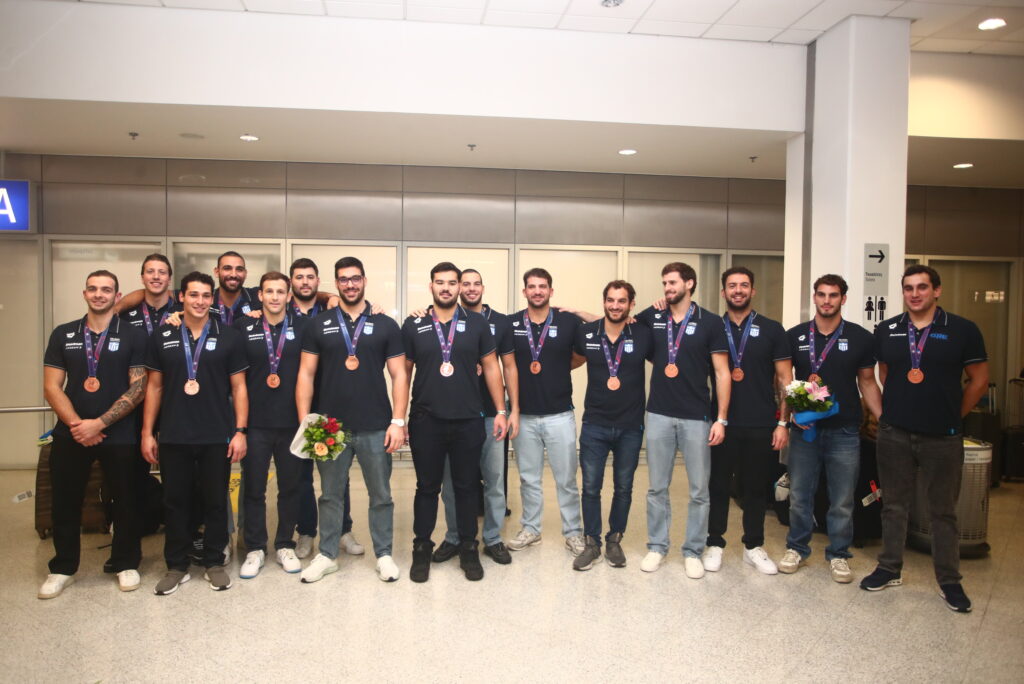 Το απόγευμα της Δευτέρας (26/1), οι Έλληνες πολίστες προσγειώθηκαν στο αεροδρόμιο “Ελευθέριος Βενιζέλος”, έχοντας τα μετάλλια στο στήθος και χαμόγελα υπερηφάνειας.