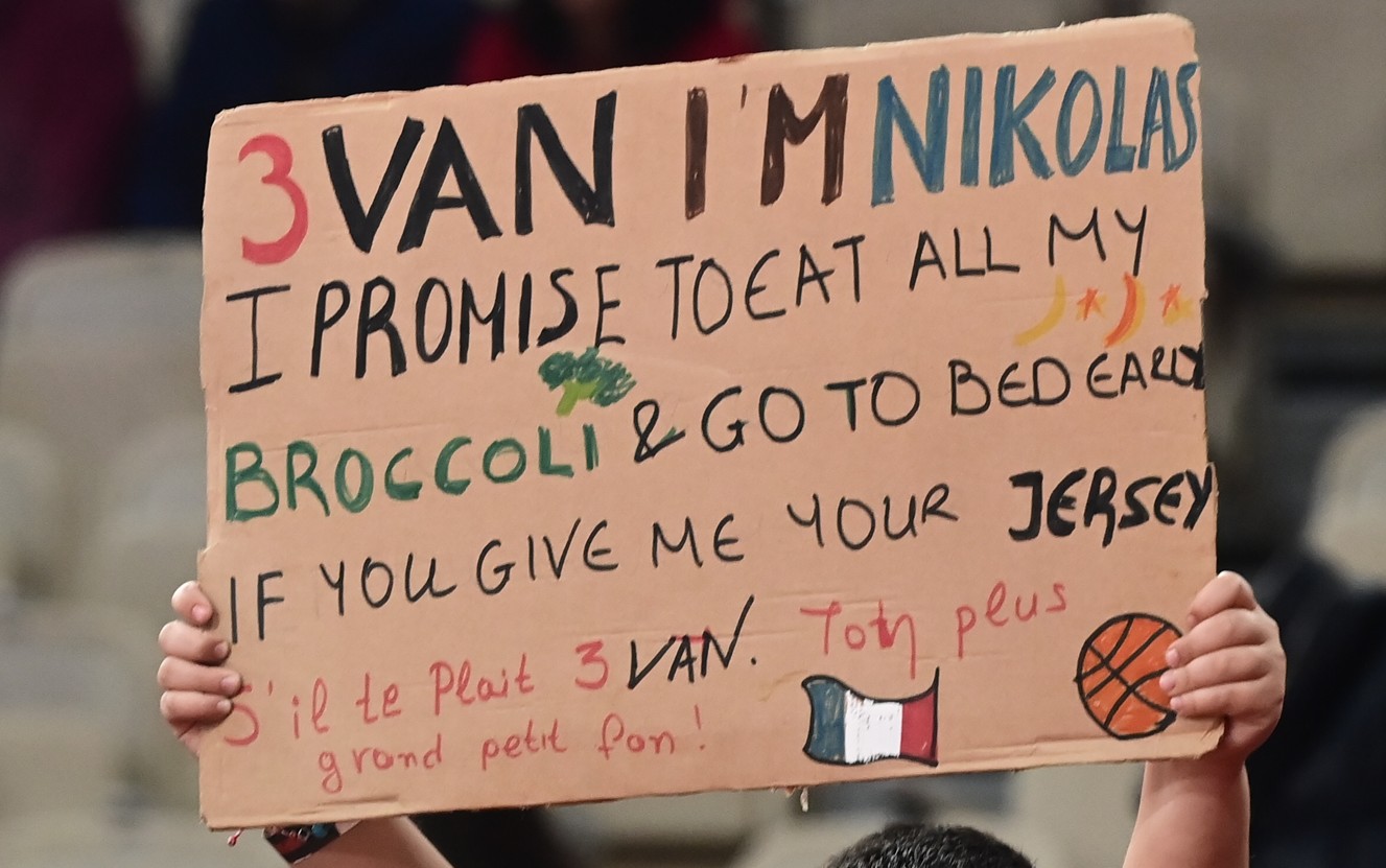 «Εβάν, είμαι ο Νικόλας. Υπόσχομαι να τρώω όλο το μπρόκολό μου και να πηγαίνω νωρίς για ύπνο αν μου δώσεις τη φανέλα σου», ανέφερε το πανό, προκαλώντας χαμόγελα στις εξέδρες και δημιουργώντας μια ζεστή στιγμή λίγο πριν ξεκινήσει το παιχνίδι.