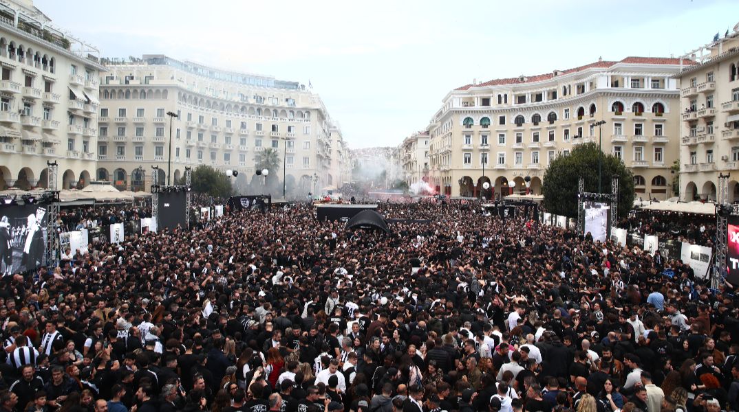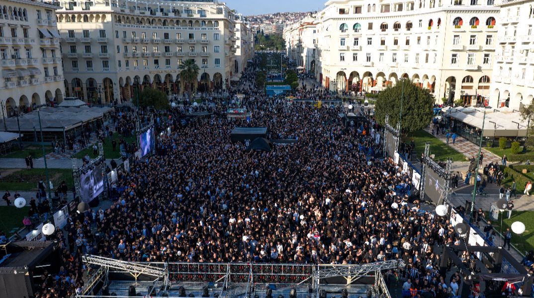 Η Θεσσαλονίκη γιορτάζει τα 100 χρόνια από την ίδρυση του ΠΑΟΚ με μια εντυπωσιακή συγκέντρωση στην πλατεία Αριστοτέλους.