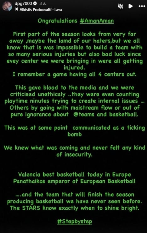 Δείτε το μήνυμα του Δημήτρη Γιαννακόπουλου στο Instagram, μετά από την πρόκριση του Παναθηναϊκού στα playoffs της EuroLeague.
